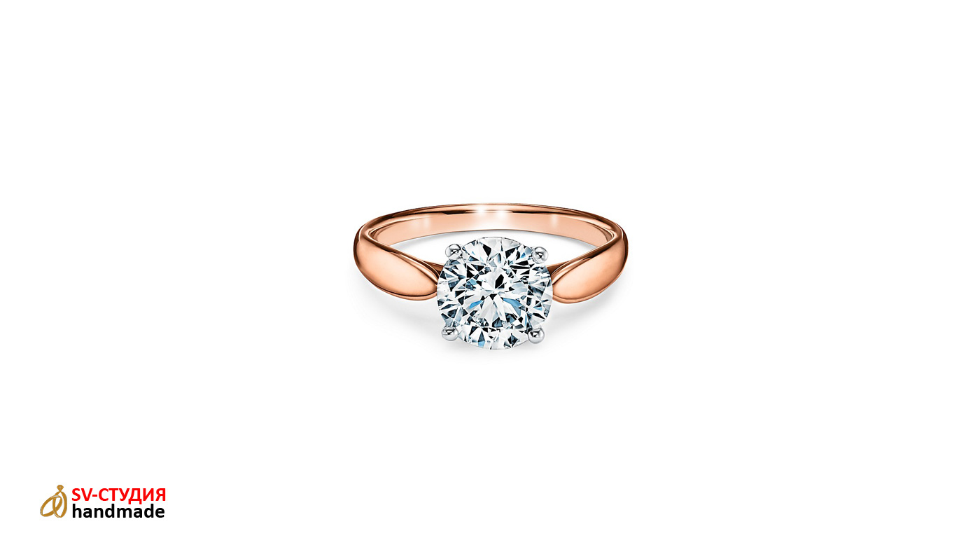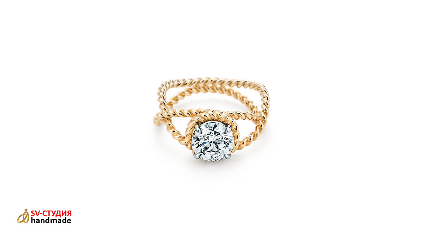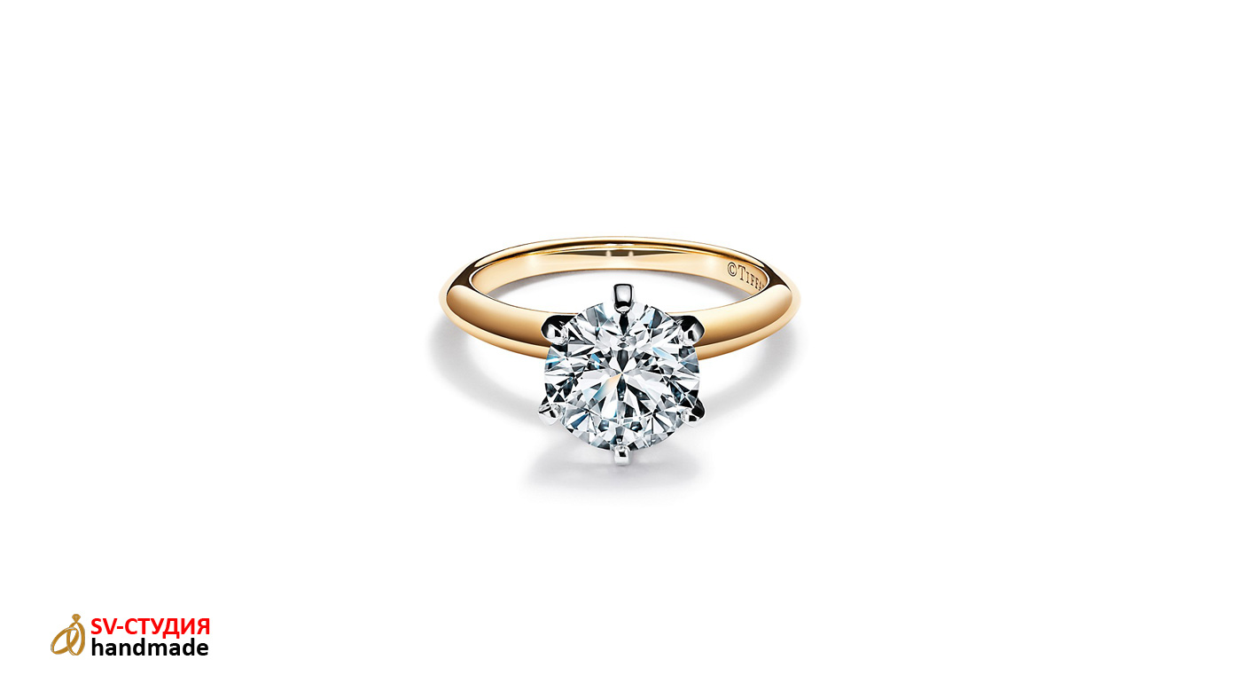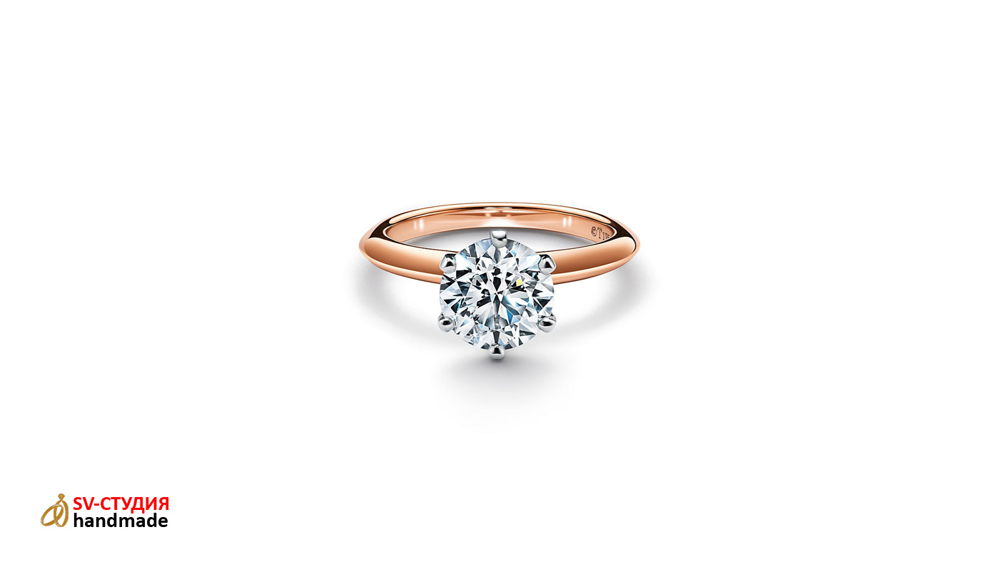 Возможно изготовление практически любых помолвочных колец Tiffany из розового, белого и жёлтого золота различных размеров.