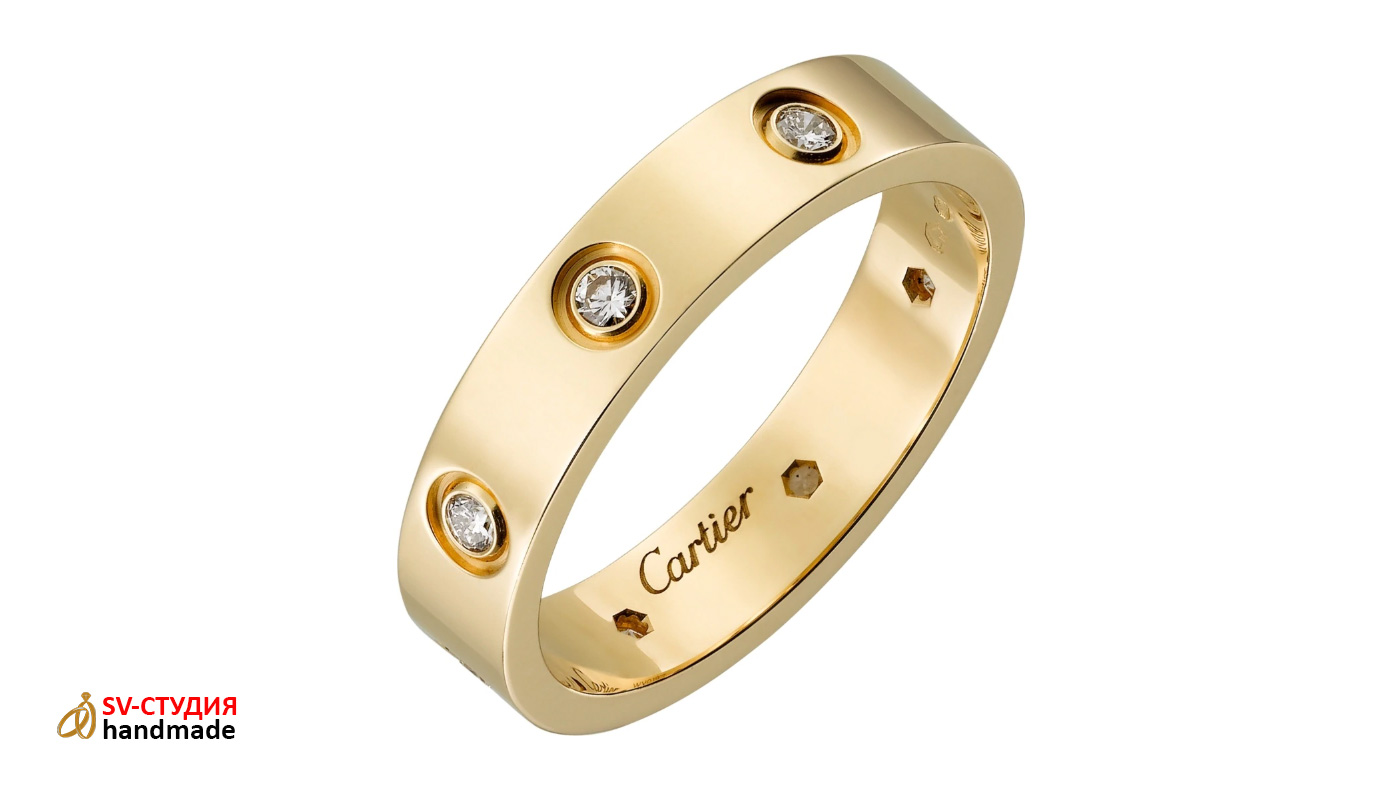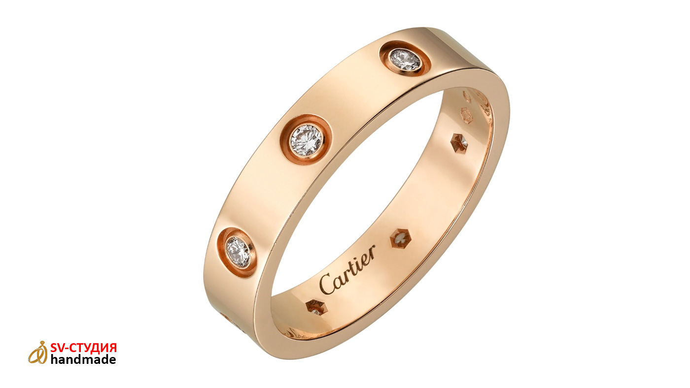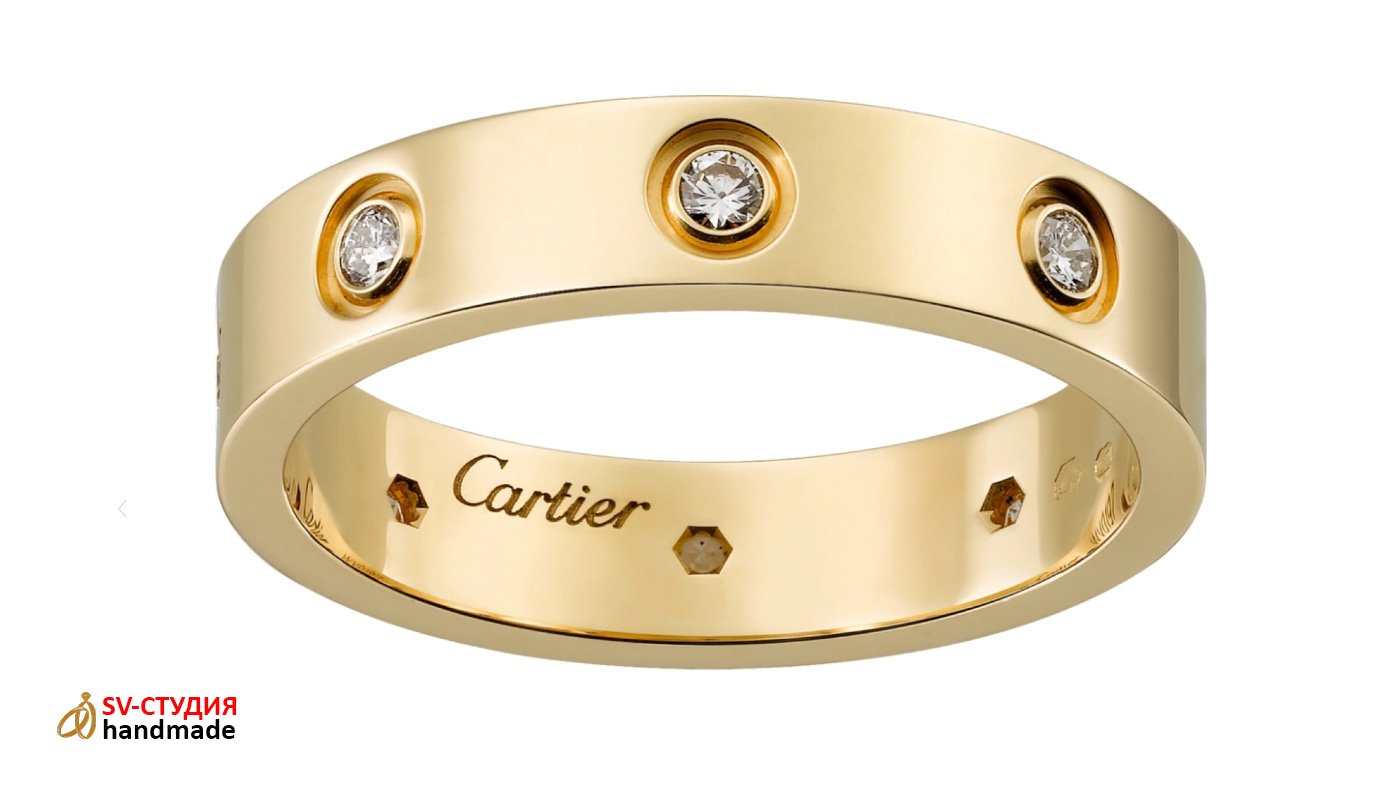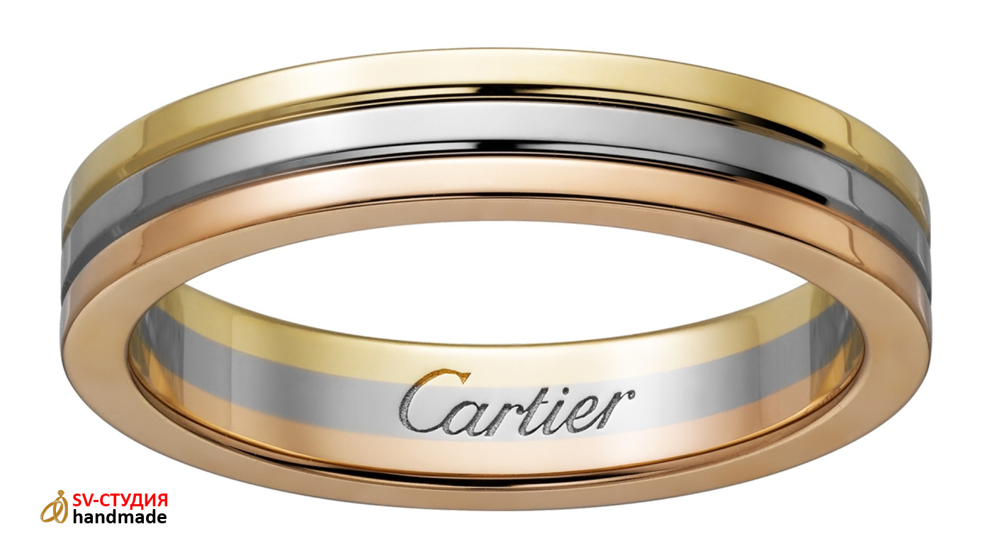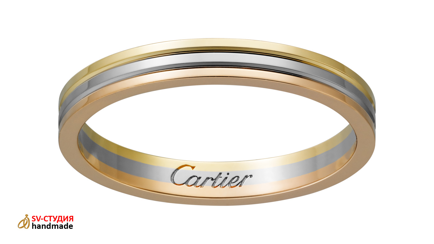 Возможно изготовление практически любых обручальных колец Cartier из розового, белого и жёлтого золота различных размеров.